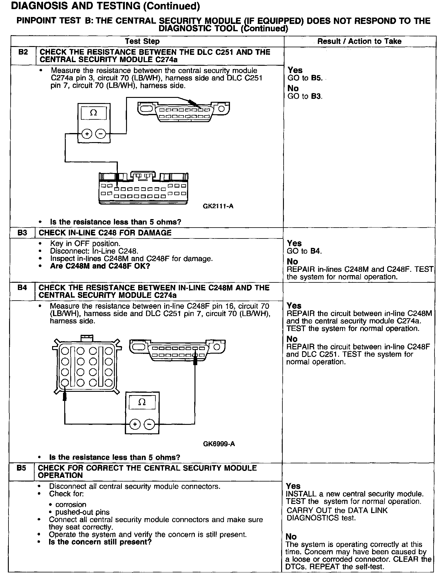 PINPOINT TEST B: THE CENTRAL SECURITY MODULE (IF EQUIPPED) DOES NOT RESPOND TO THE DIAGNOSTIC TOOL