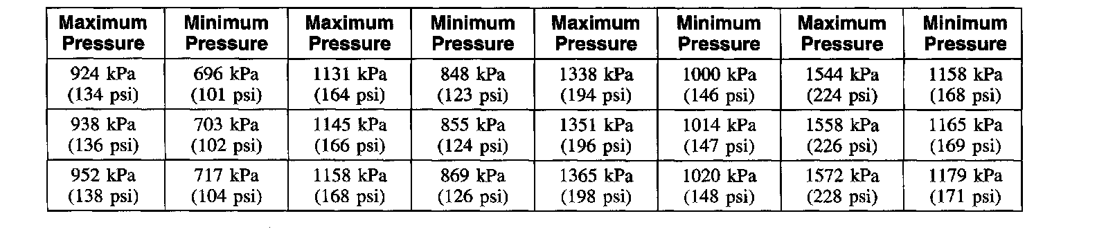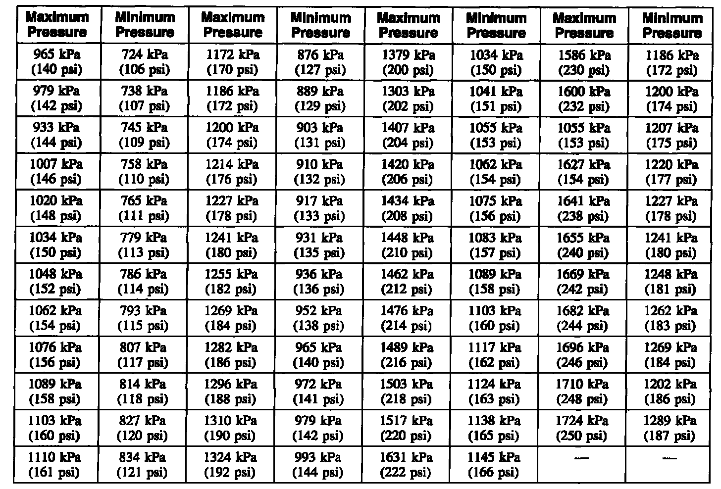 Compression Pressure Limit Chart