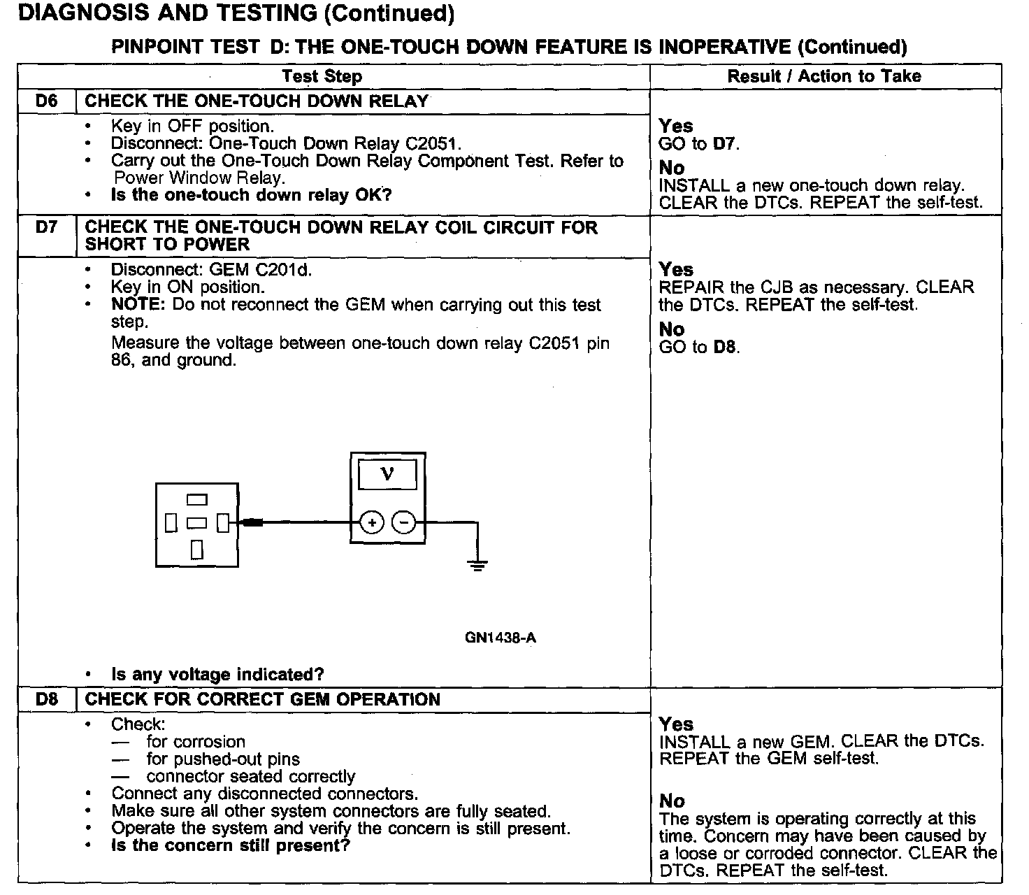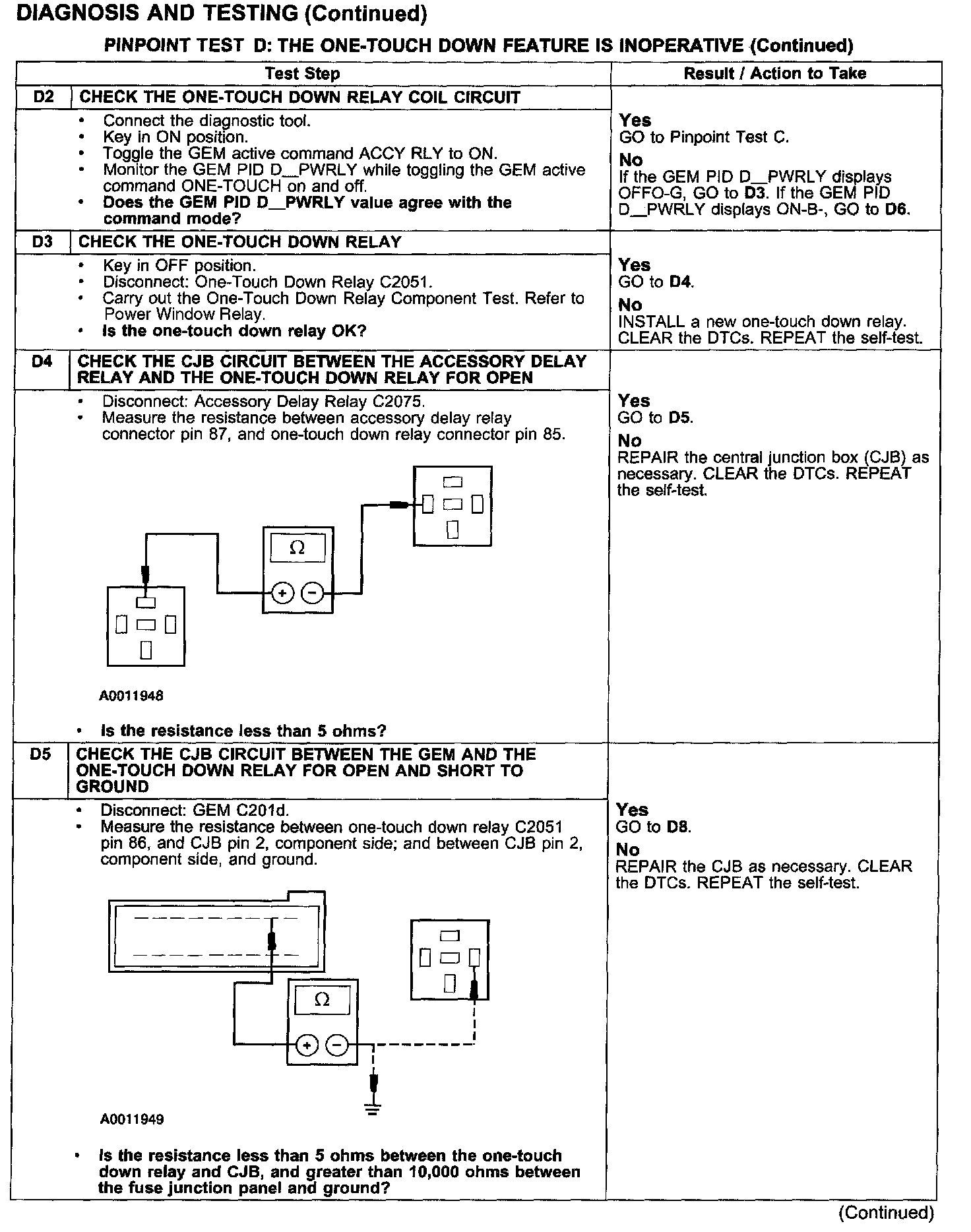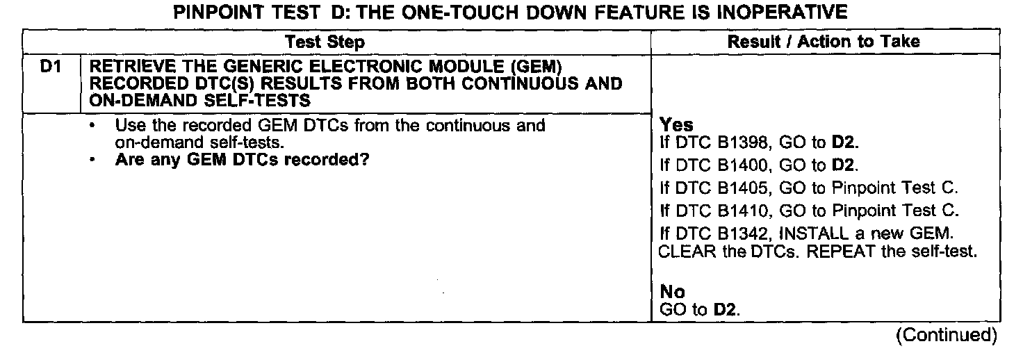 PINPOINT TEST D: THE ONE-TOUCH DOWN FEATURE IS INOPERATIVE
