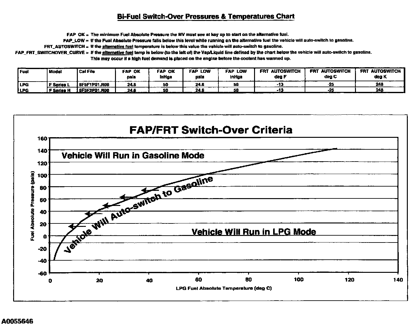 Bi-Fuel Switch-Over Pressures and Temperatures Chart: