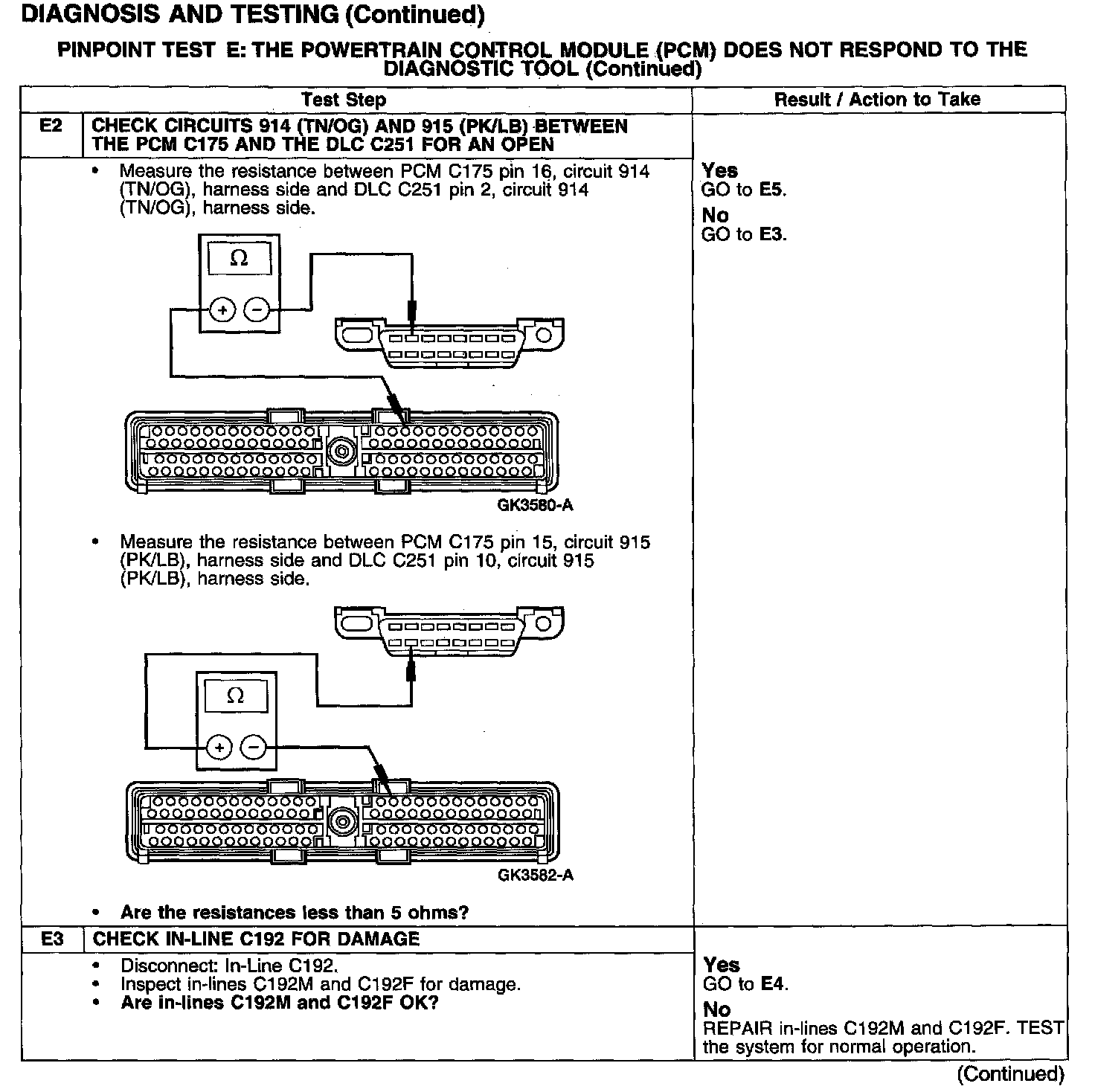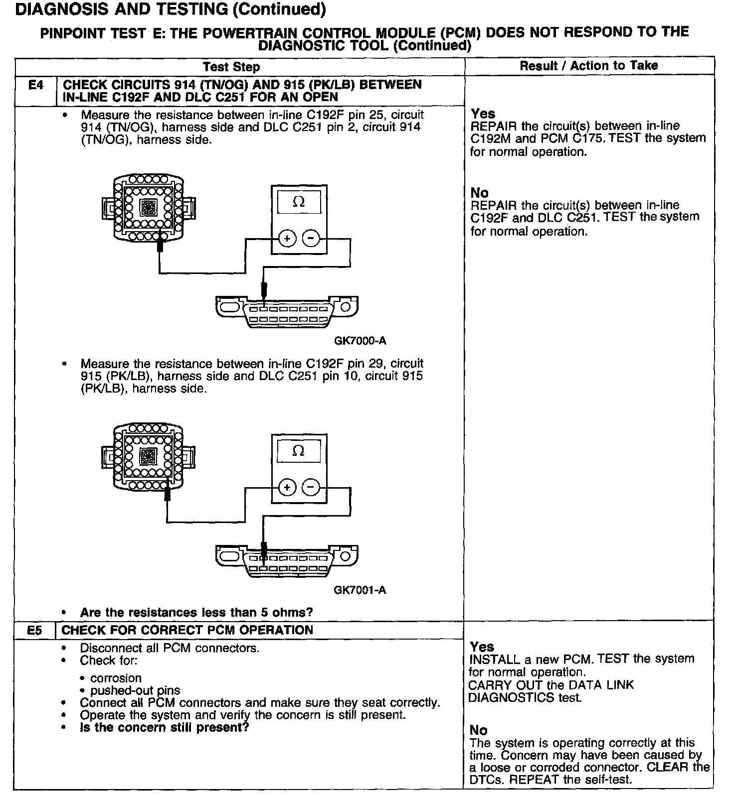 PINPOINT TEST E: THE POWERTRAIN CONTROL MODULE (PCM) DOES NOT RESPOND TO THE DIAGNOSTIC TOOL