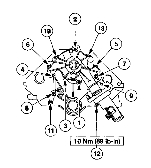 CAUTION: Make sure the capscrew is installed. If it is missed, an engine oil leak may occur.NOTE: The number 12 position is not part of the staged torque.