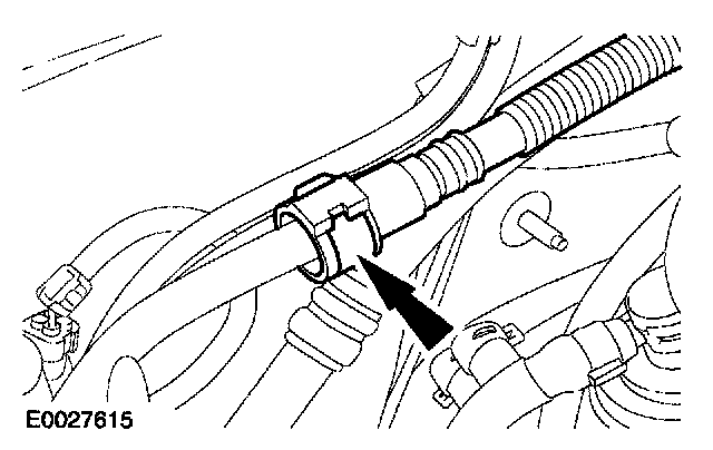 12. Disconnect the lower evaporative emission canister vacuum line and remove the evaporative emission canister purge valve.