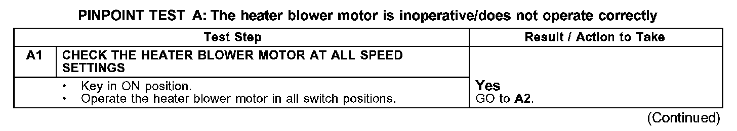 PINPOINT TEST A: THE HEATER BLOWER MOTOR IS INOPERATIVE/DOES NOT OPERATE CORRECTLY