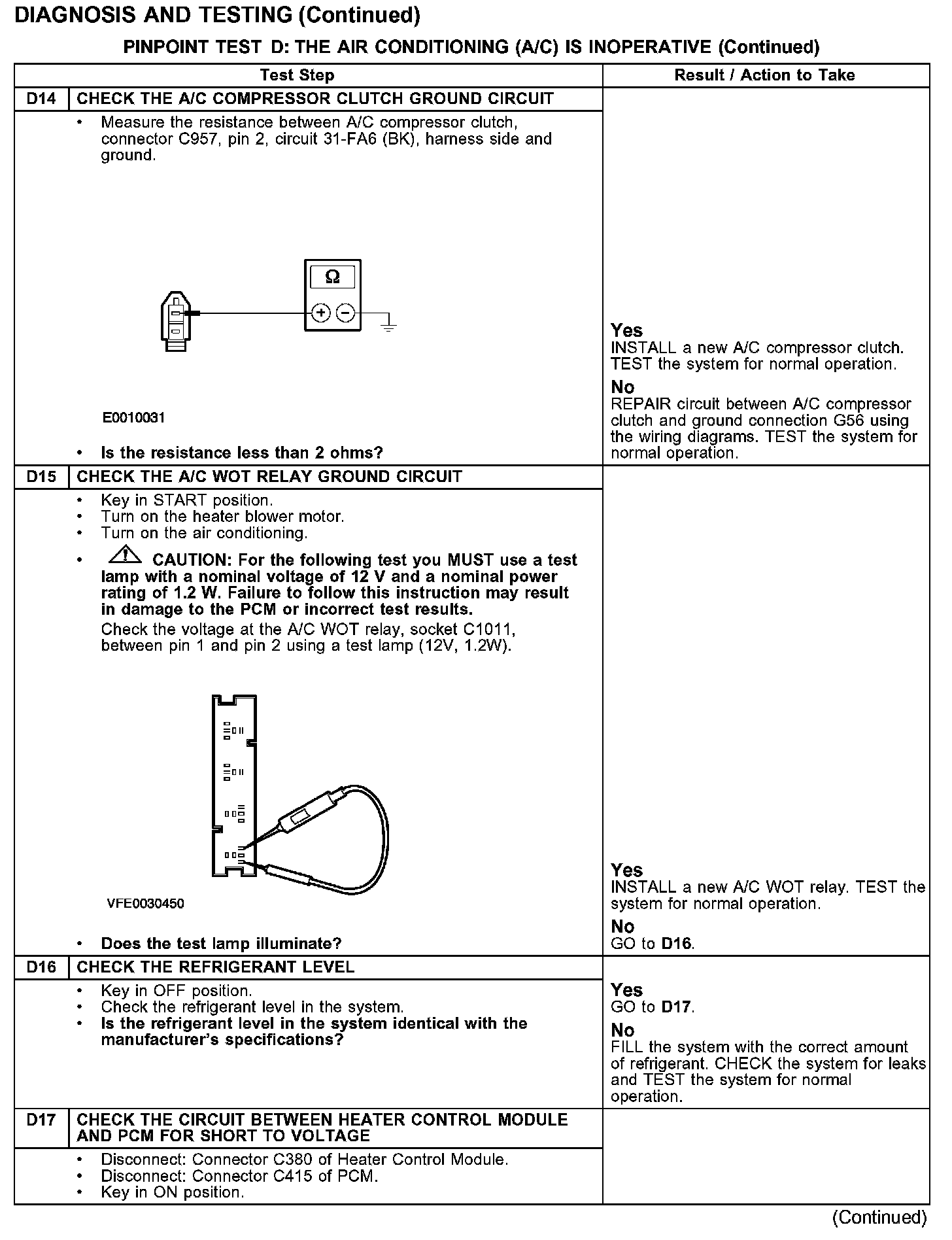 PINPOINT TEST D: THE AIR CONDITIONING (A/C) IS INOPERATIVE