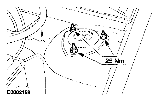 38. Tighten the left-hand strut and spring assembly top mount nuts.