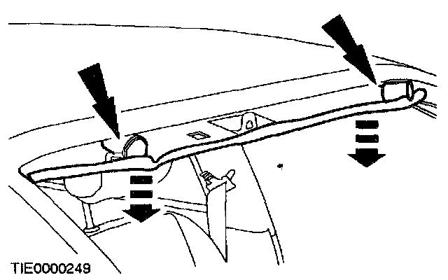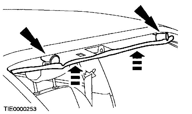 7. Partially lower the headliner and place two blocks of suitable material between the headliner and the roof opening to act as spacers.