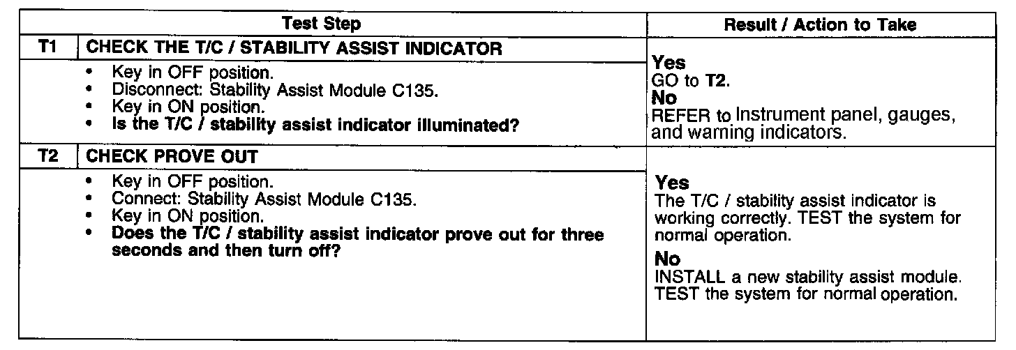 PINPOINT TEST T: THE STABILITY ASSIST INDICATOR DOES NOT SELF-CHECK