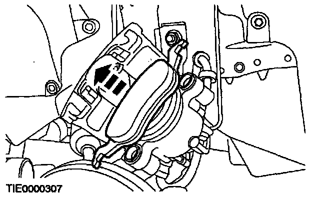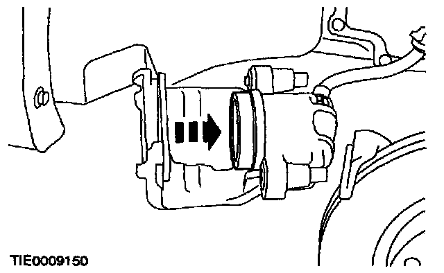 7. CAUTION: Suspend the caliper to prevent load being placed on the brake hose.
