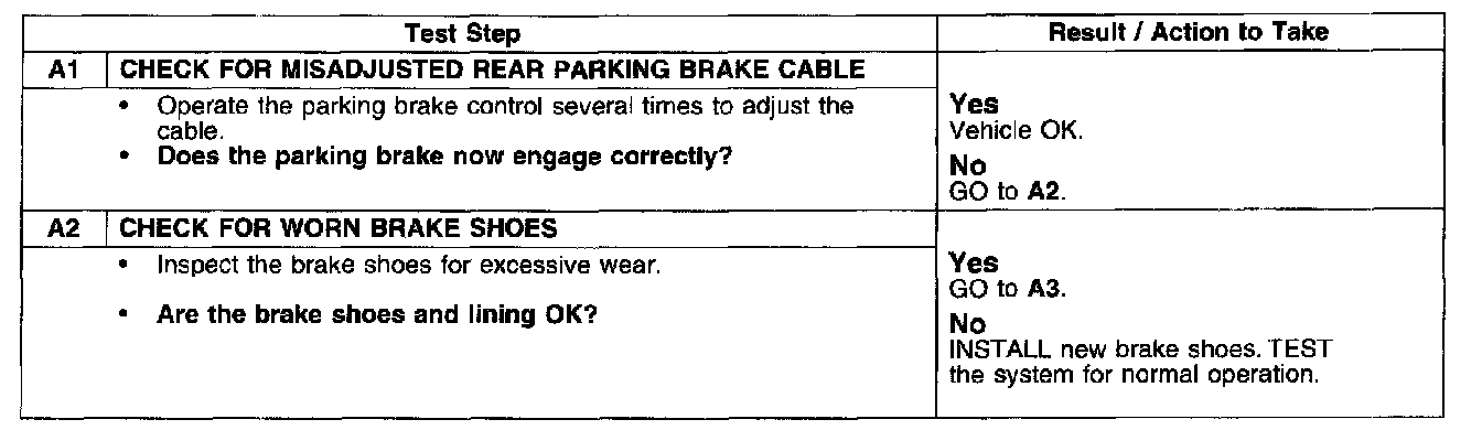PINPOINT TEST A: THE PARKING BRAKE WILL NOT APPLY