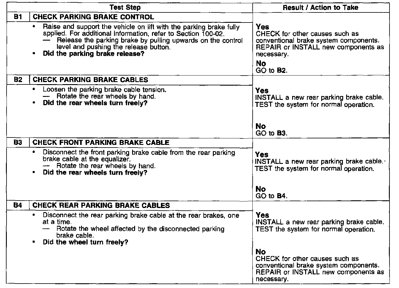 PINPOINT TEST B: THE PARKING BRAKE WILL NOT RELEASE