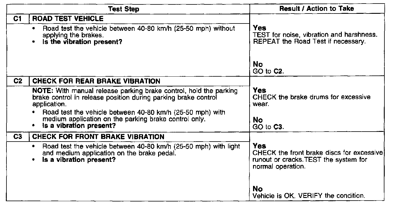 PINPOINT TEST C: VIBRATION WHEN BRAKES ARE APPLIED