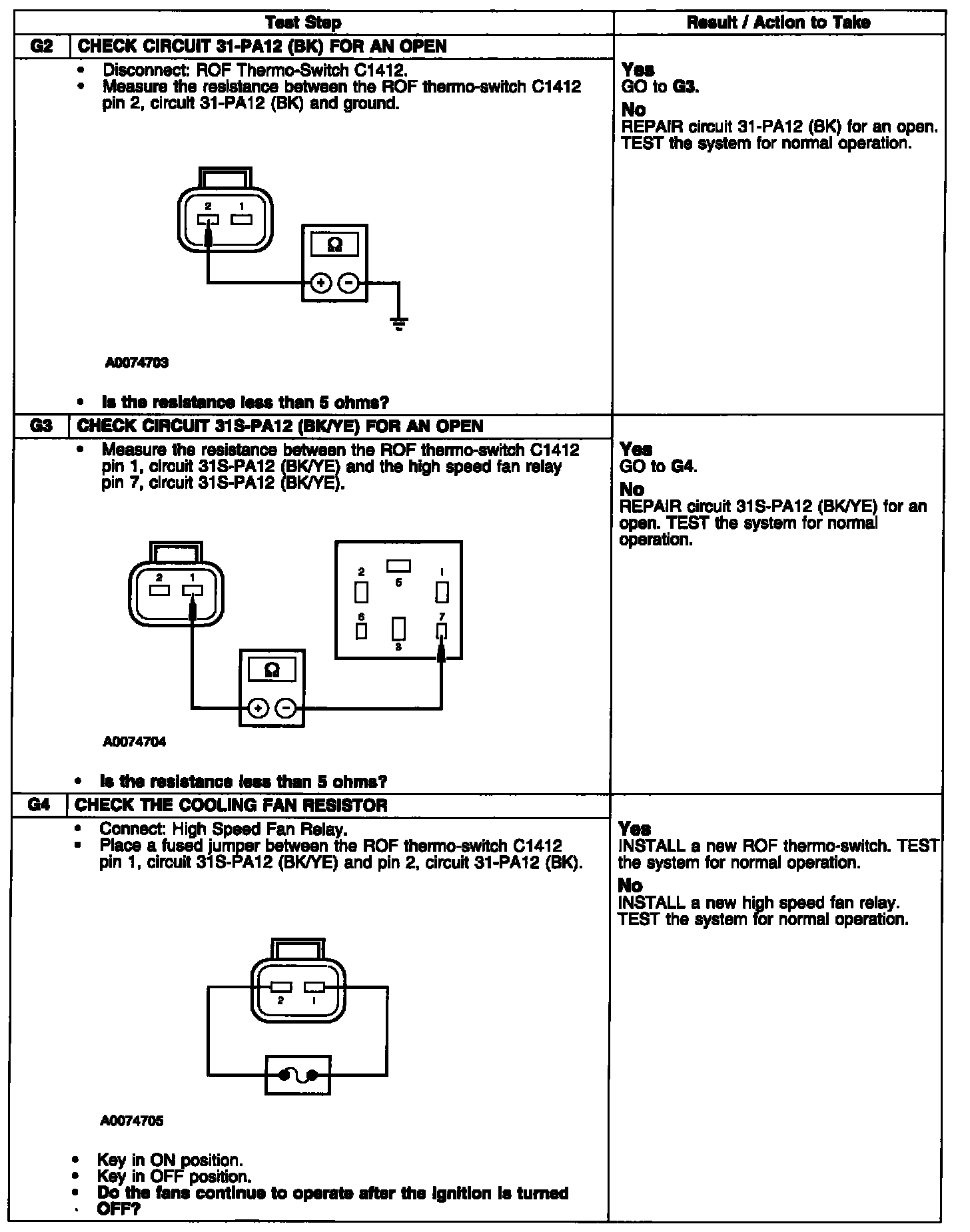 PINPOINT TEST G: THE RUN ON FAN (ROF) IS INOPERATIVE