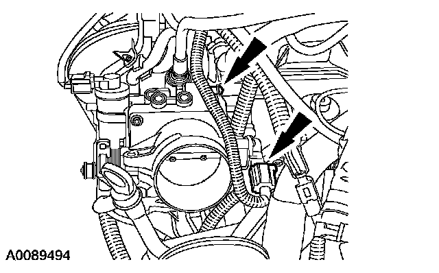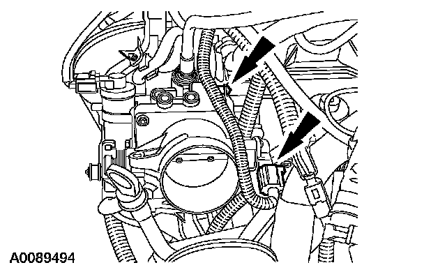 5. Disconnect the throttle position (TP) sensor electrical connector and position the wiring harness aside.