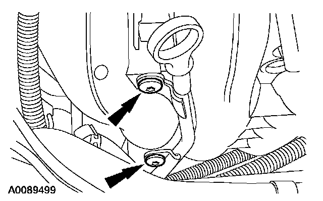 15. Remove the two oil level indicator tube bolts.
