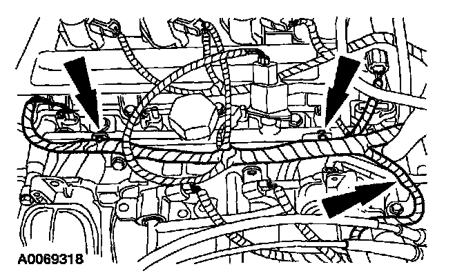 48. Install the fuel injection supply manifold and the ground strap.