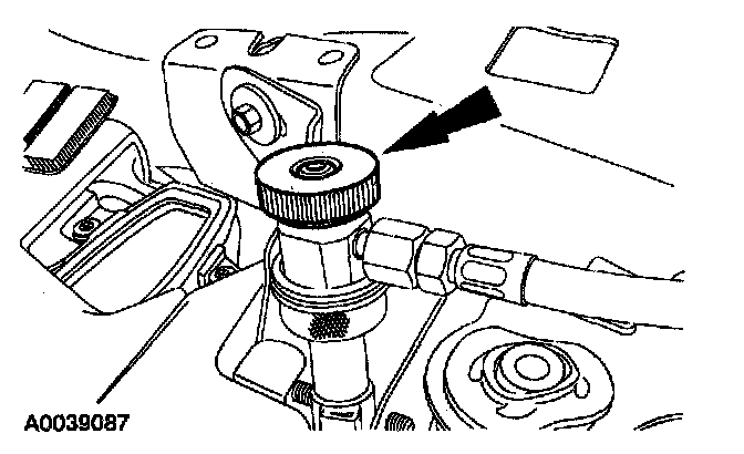 8. Remove the fluorescent dye injector from the low-pressure service gauge port valve and the R-134a A/C refrigerant service center or manifold gauge set.