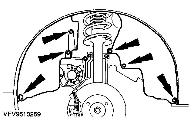 - Detach the wheel arch trim panel on the passenger's side (driver's side shown).