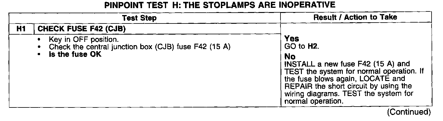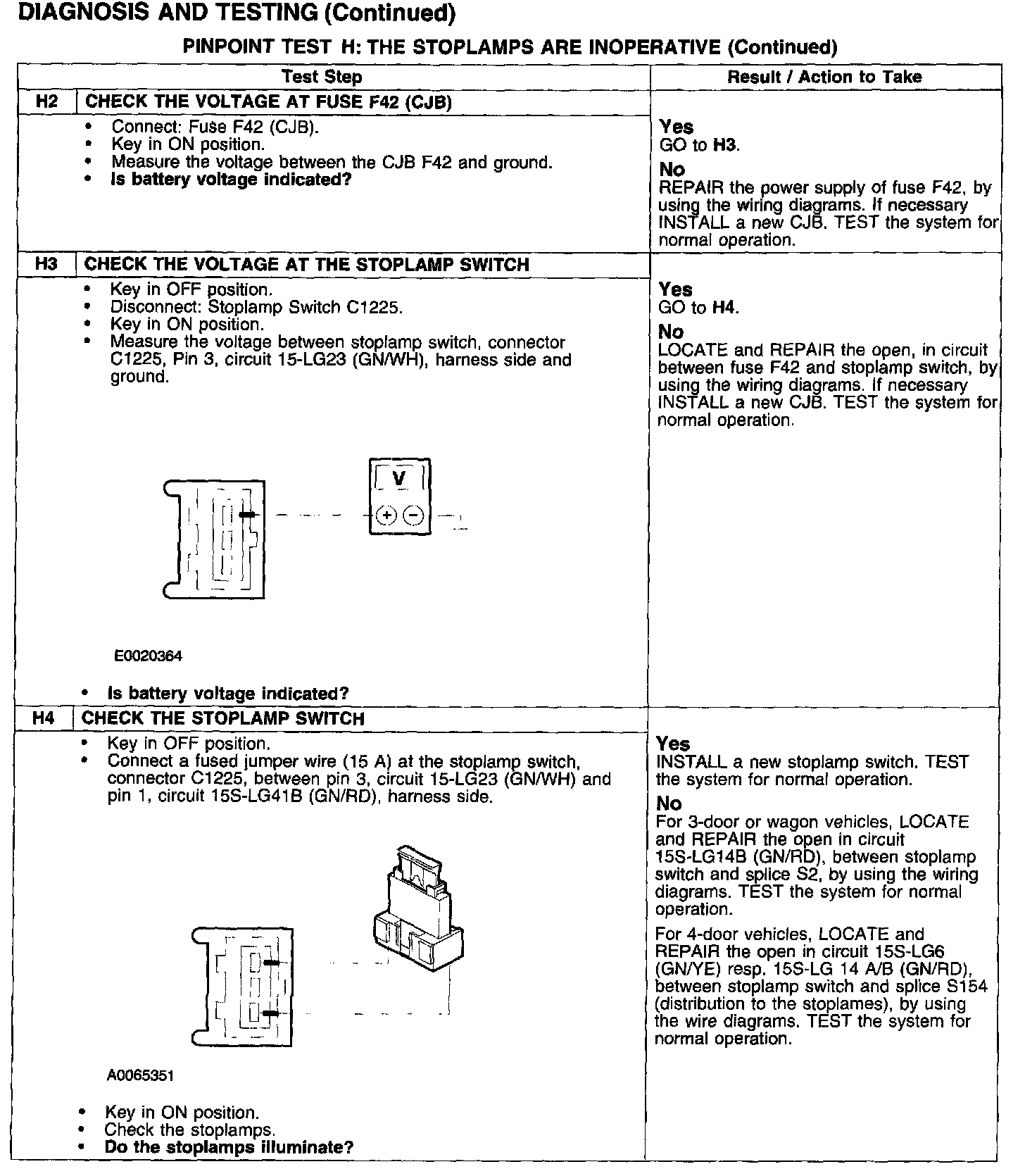 PINPOINT TEST H: THE STOPLAMPS ARE INOPERATIVE