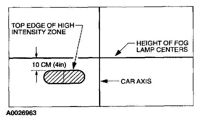 3. The correct visual aim for the fog lamps is with the top edge of the high-intensity zone 10 cm (4 in) below the horizontal center of the fog lamps.
