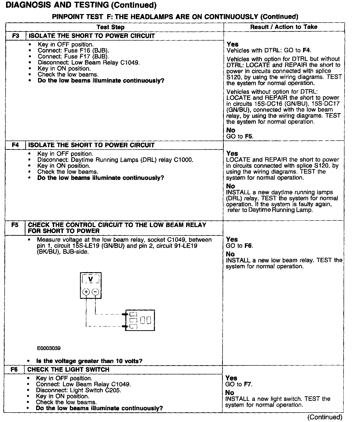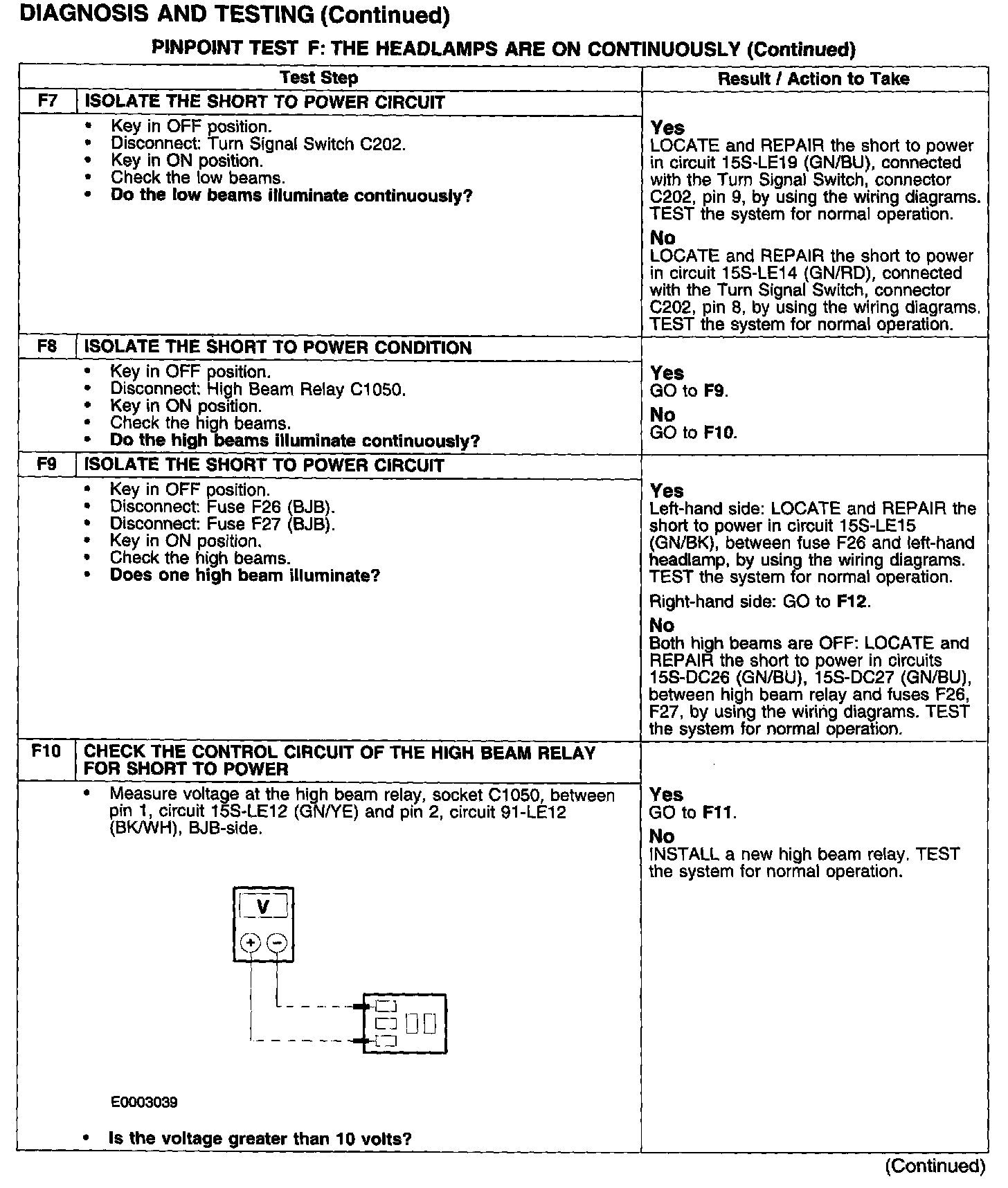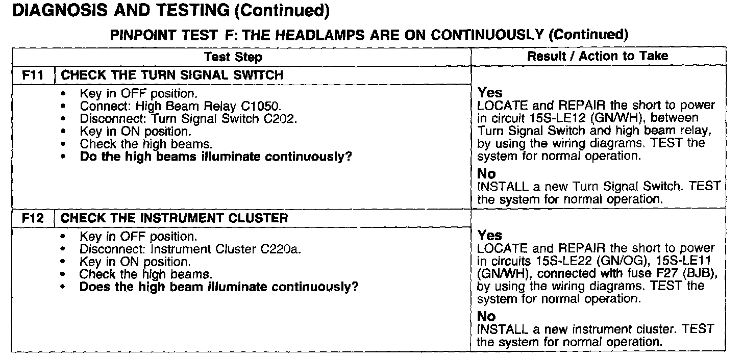 PINPOINT TEST F: THE HEADLAMPS ARE ON CONTINUOUSLY