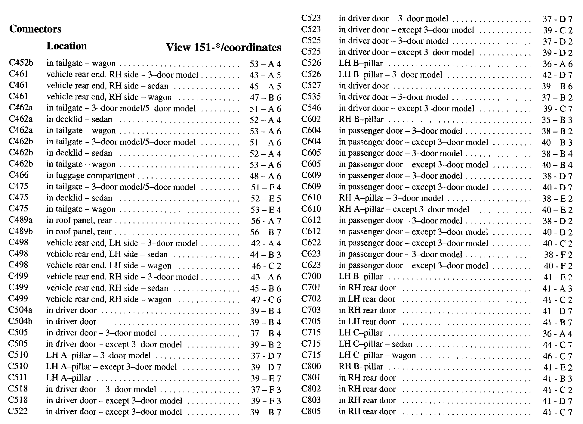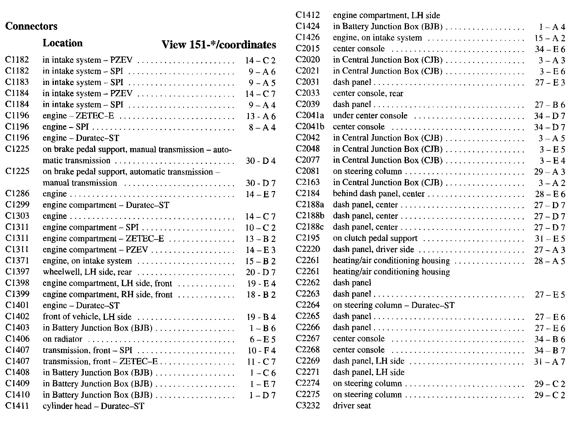 PLEASE NOTE: If a link on the Connector Location Index to a view is not provided, that means that the Connector and/or View in question does NOT apply to the vehicle model selected.