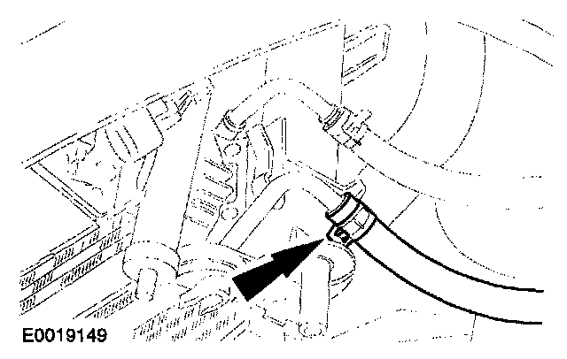 3. Attach a length of suitable drain hose to the transmission fluid cooler return hose.