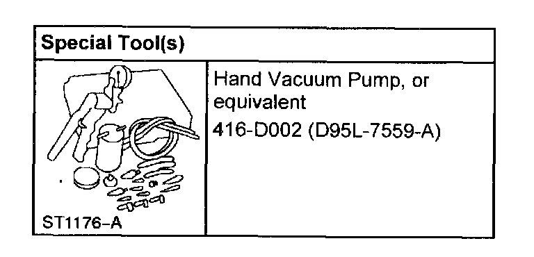 5. NOTE: When bleeding the system, the vacuum will decrease. Using the special tool, maintain a vacuum of 51 kPa (15 in-Hg). If the vacuum decreases by more than 7 kPa (2 in-Hg) in five minutes the system should be checked for leaks.