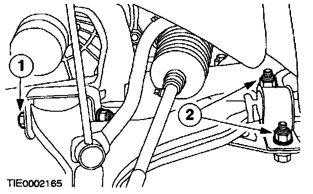 1. NOTE: Bolts 1 and 3 are torque-to-yield. New nuts, bolts and ball bearing washers must be installed. Install the lower arm bolts.