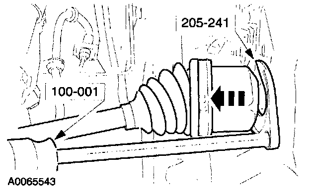 ^ Using the special tool, detach the halfshaft from the transaxle.