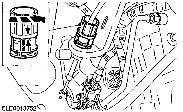 5. Close the selector lever cable outer sleeve by turning the locking mechanism clockwise.
