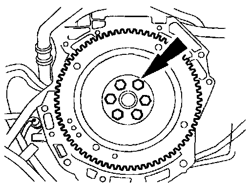 2. Install the flywheel. Tighten the bolts in the sequence shown in three stages.