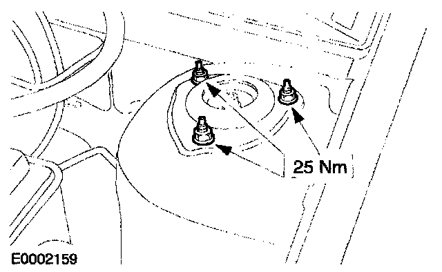 39. Tighten the strut and spring assembly top mount nuts by five turns on troth sides.