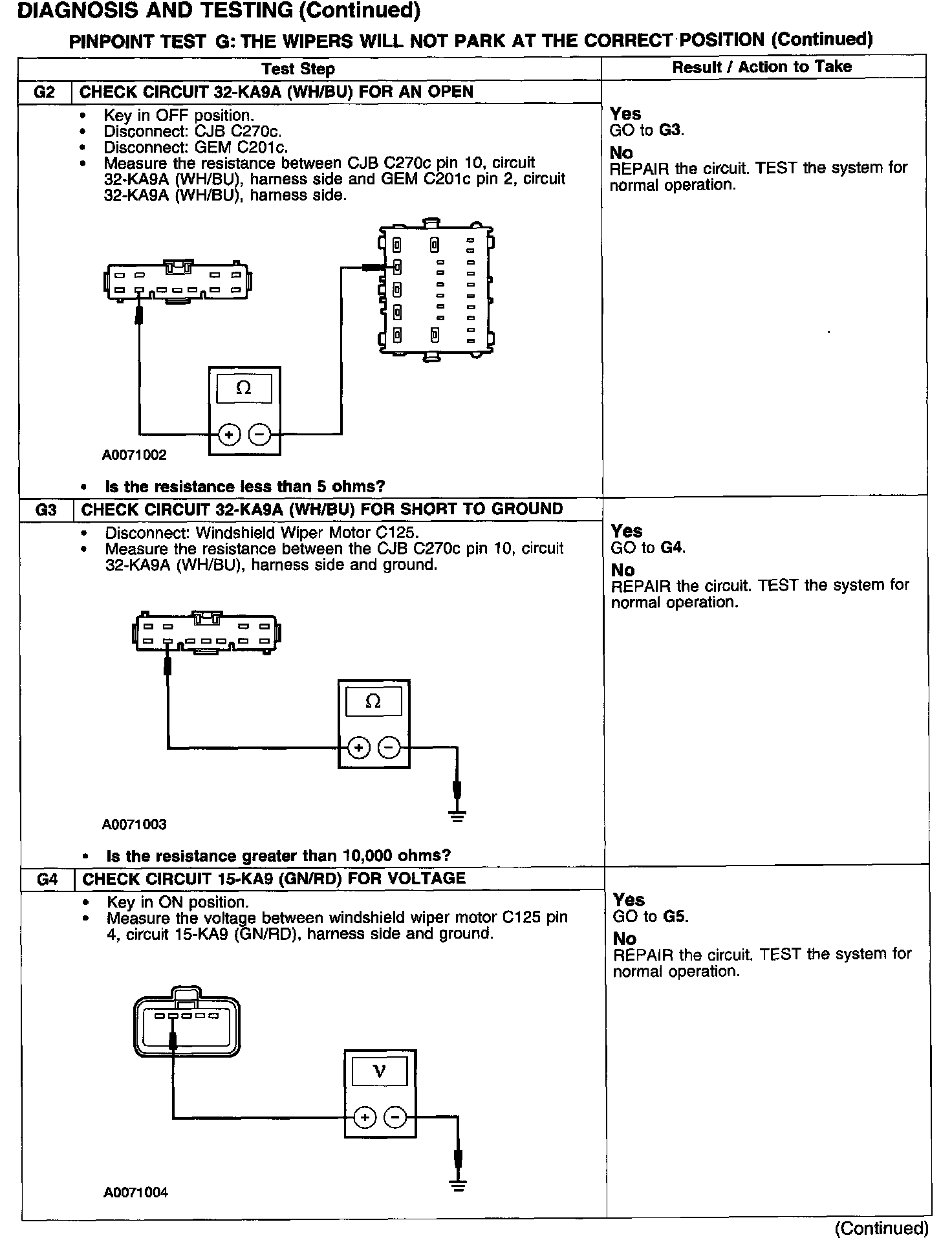 PINPOINT TEST G: THE WIPERS WILL NOT PARK AT THE CORRECT POSITION
