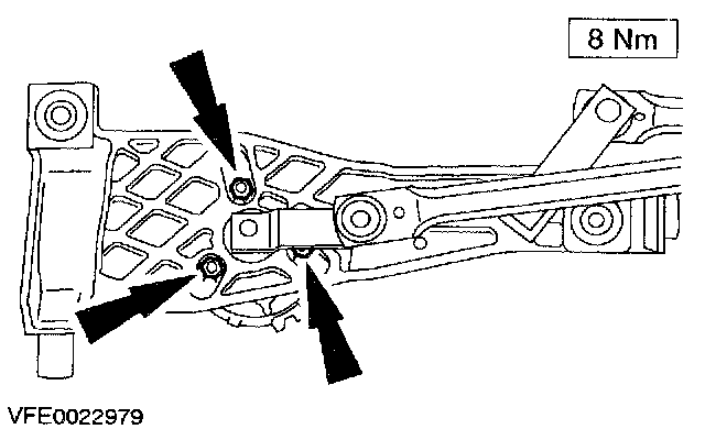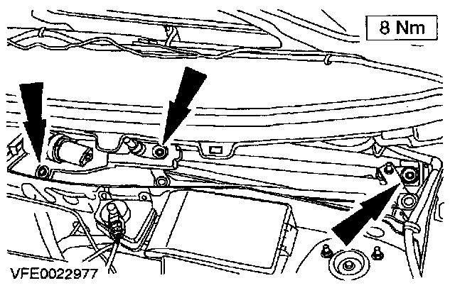 7. Remove the bolts and the windshield wiper motor.
