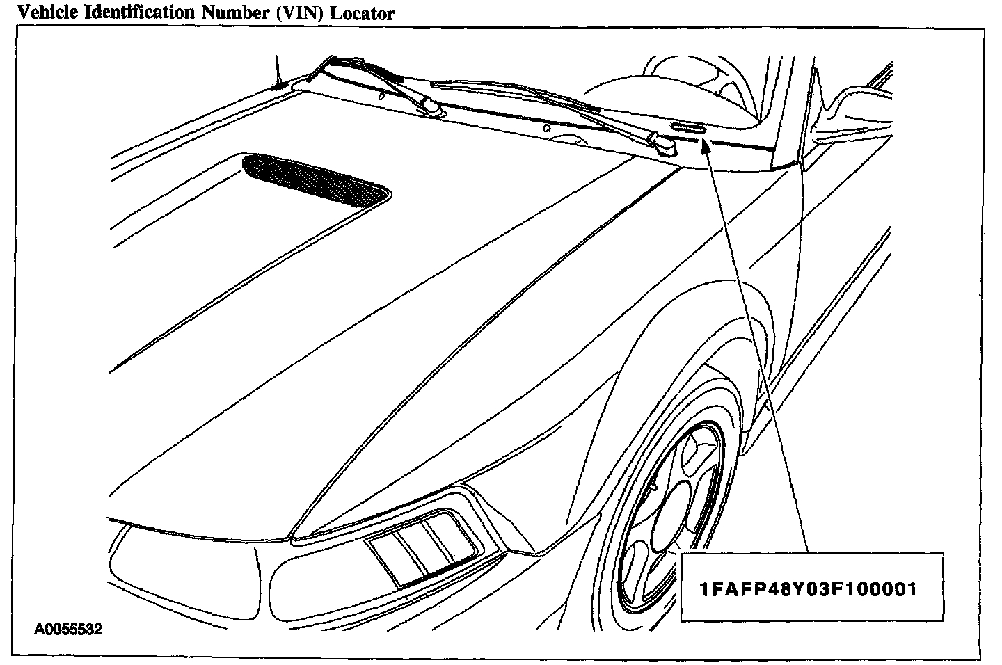 The Vehicle Identification Number (VIN) is a seventeen-digit alphanumeric code. The VIN is stamped on a metal tab riveted to the instrument panel, top upper left of the dash. The VIN number is also found on the Vehicle Certification (VC) label.