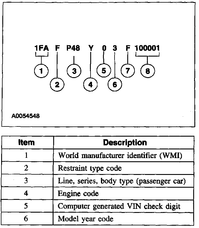 Positions 5 through 7 indicate vehicle line, series and body type.