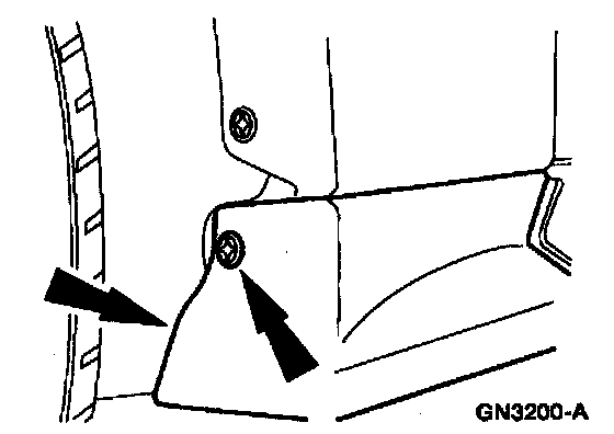3. Remove the screw, the two pin-type retainers and the front rocker panel moulding.