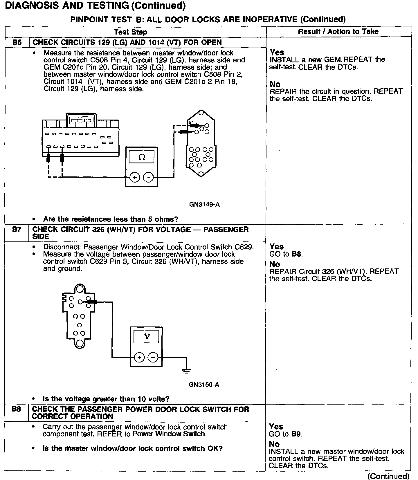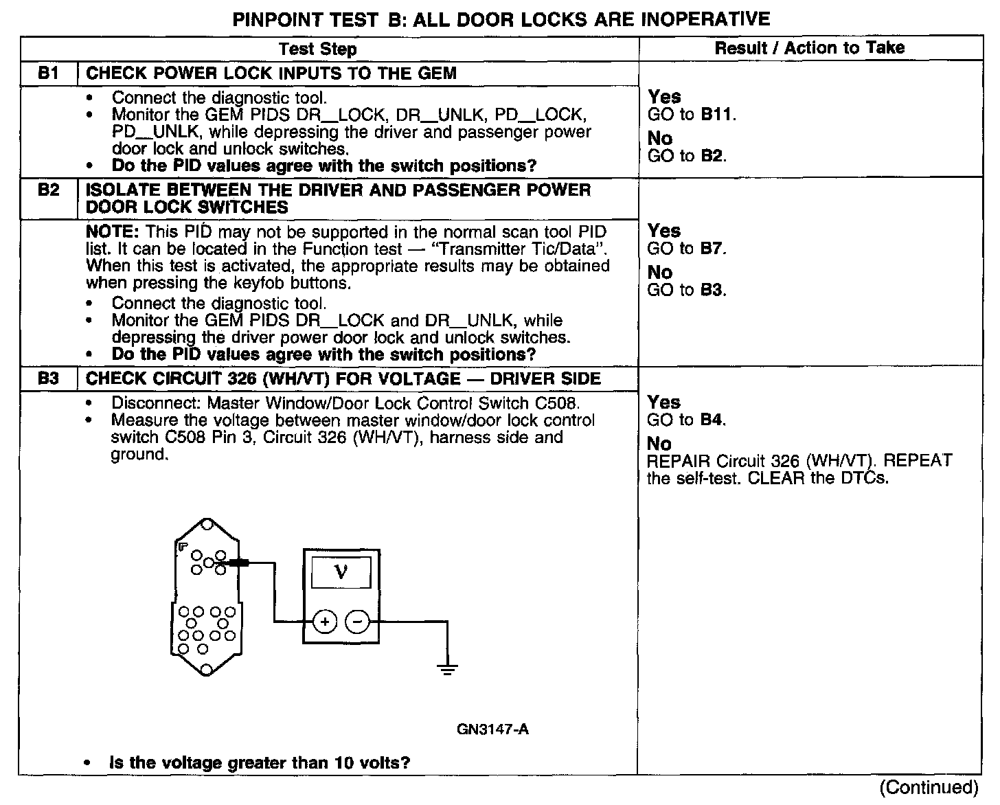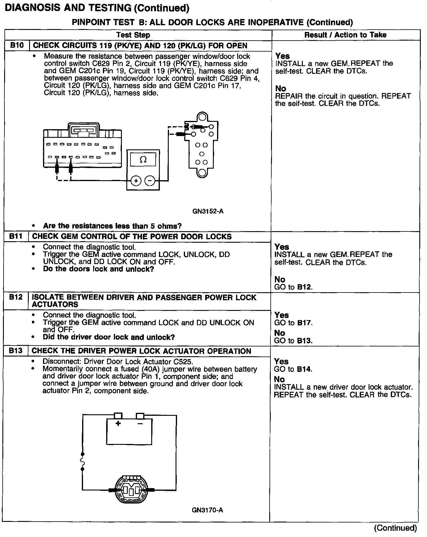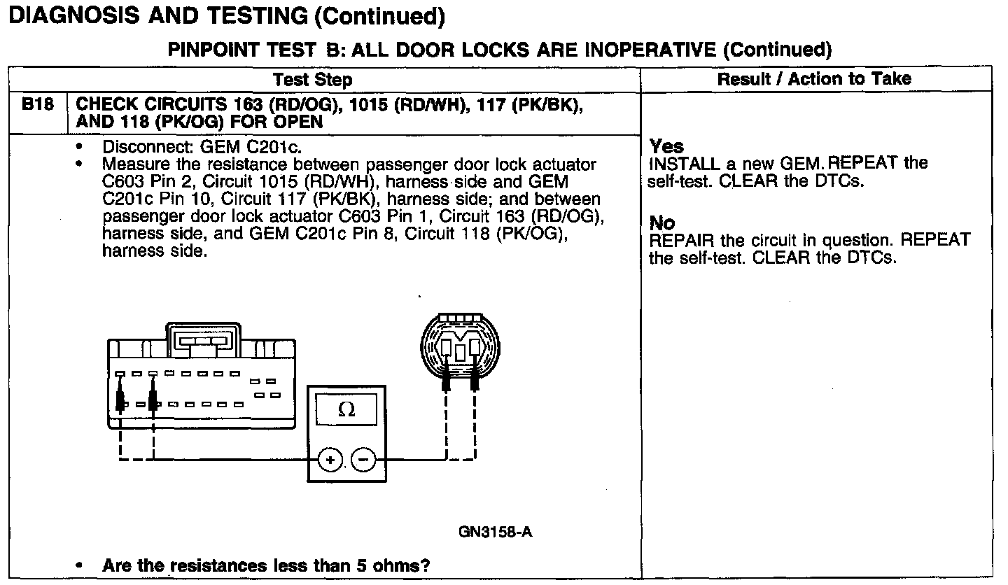 PINPOINT TEST B: ALL DOOR LOCKS ARE INOPERATIVE