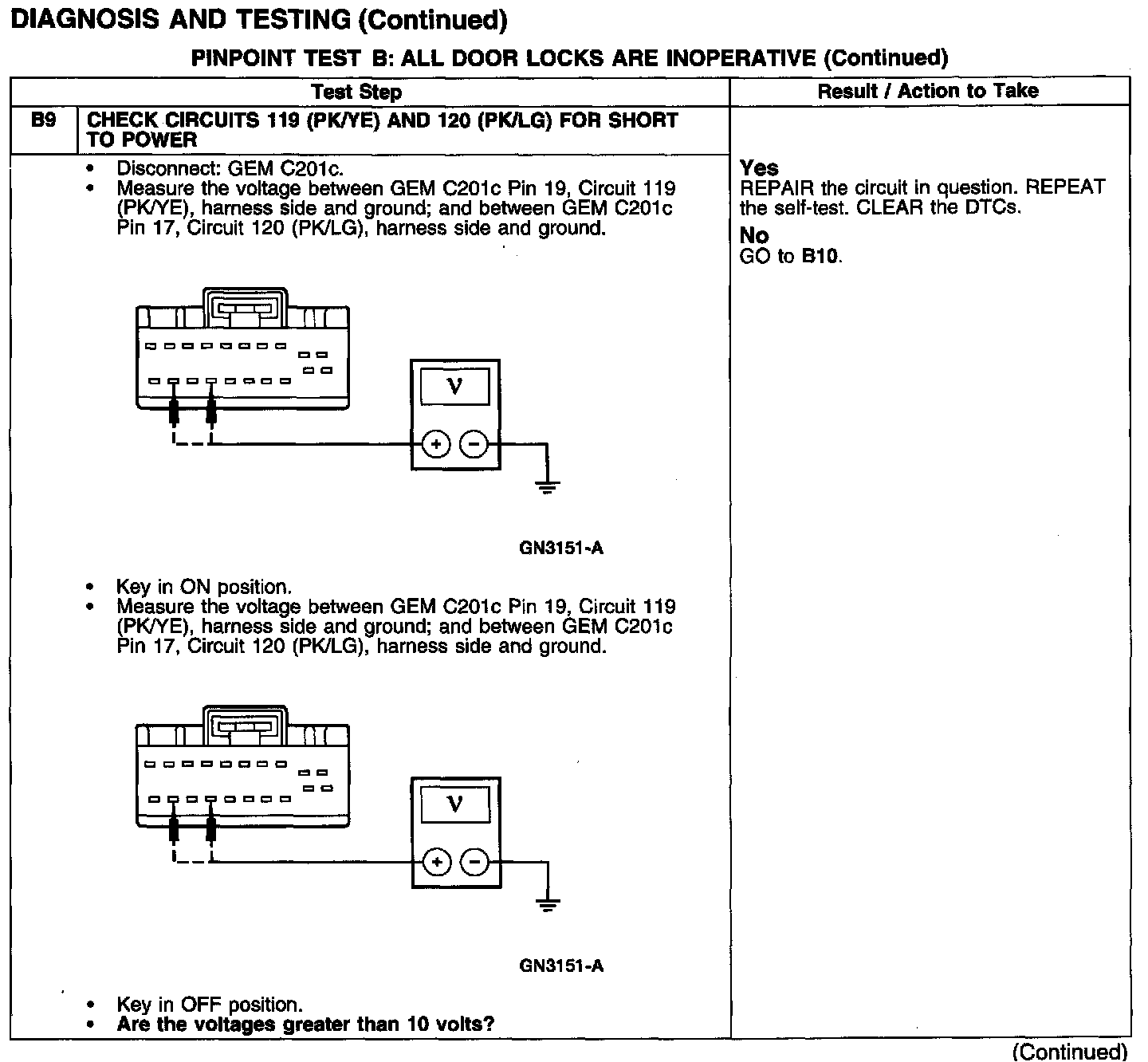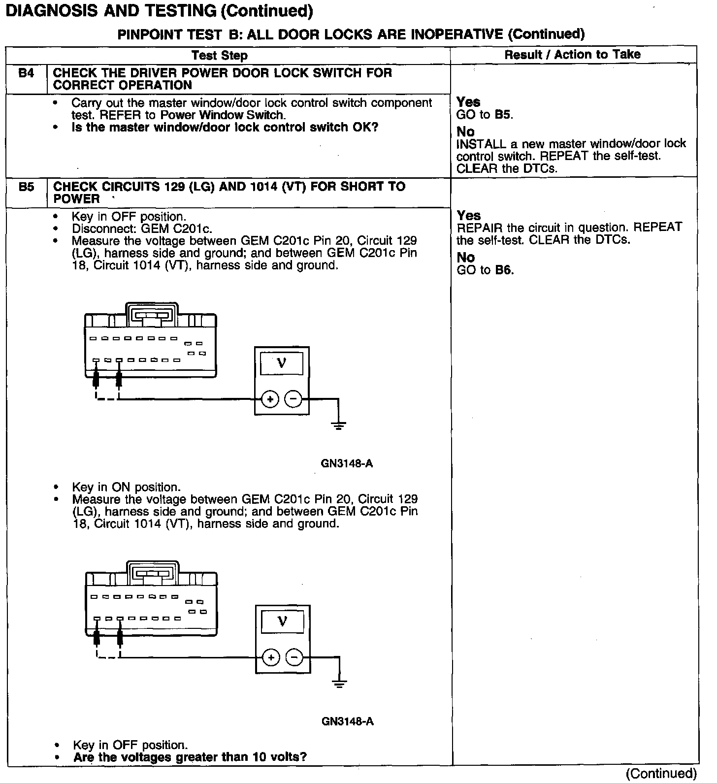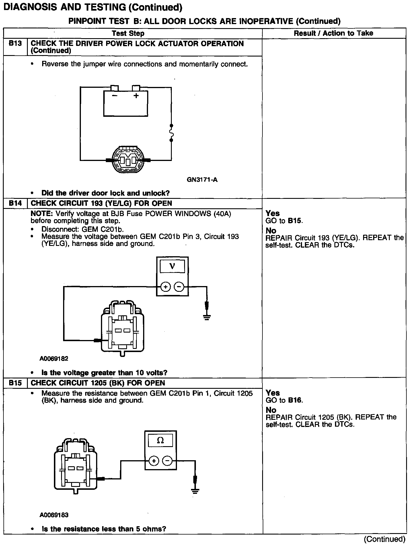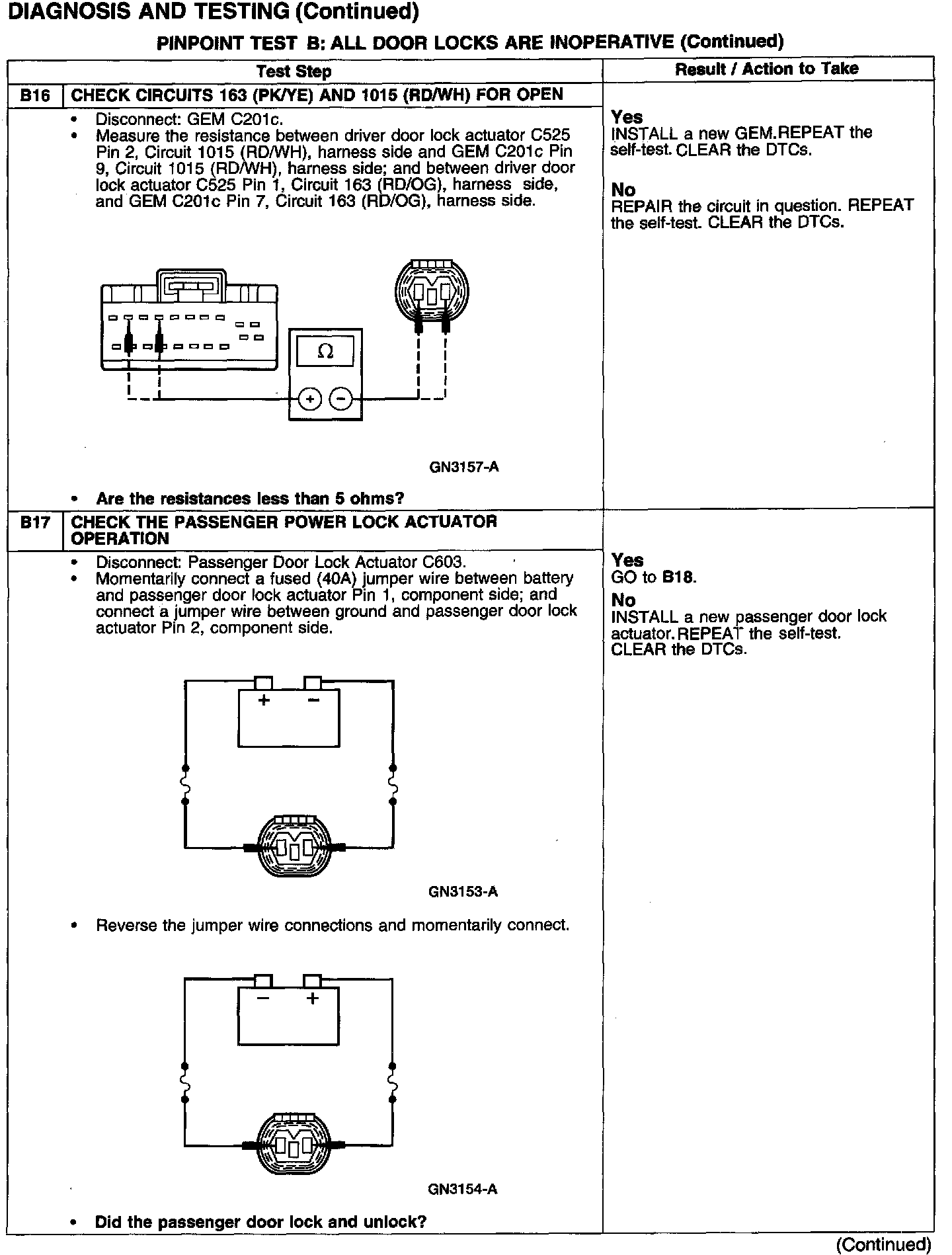 PINPOINT TEST B: ALL DOOR LOCKS ARE INOPERATIVE