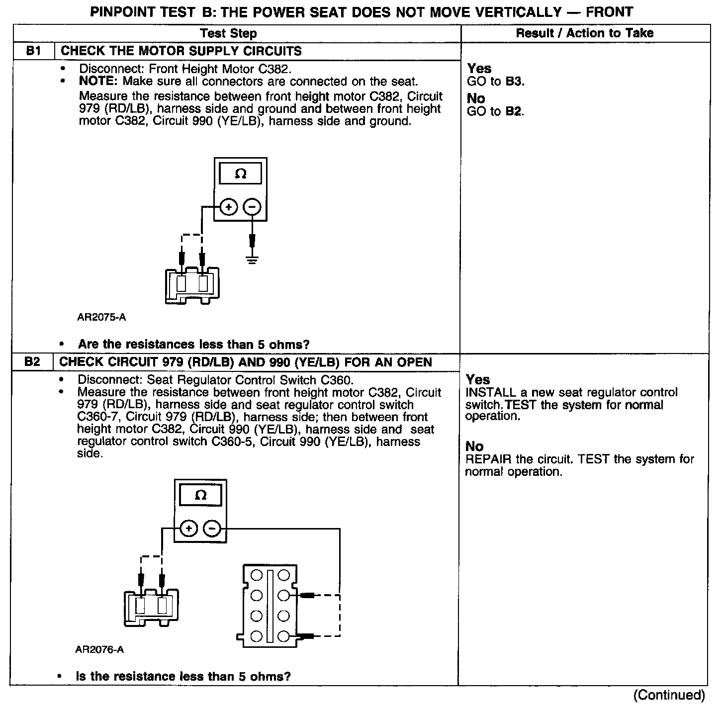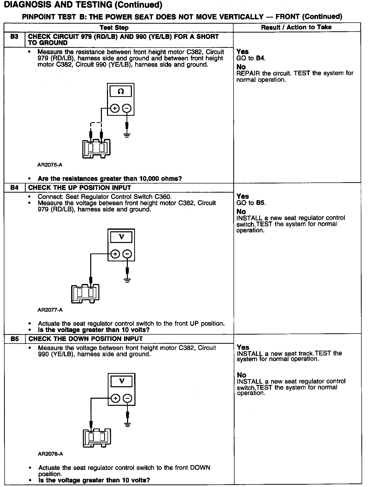 PINPOINT TEST B: THE POWER SEAT DOES NOT MOVE VERTICALLY - FRONT