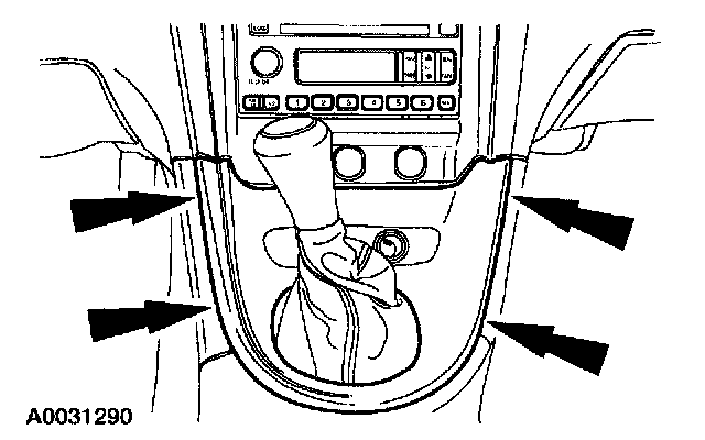 1. NOTE: If the vehicle is equipped with an automatic transmission, position the shift lever in the 1 position before detaching the floor console finish panel.
