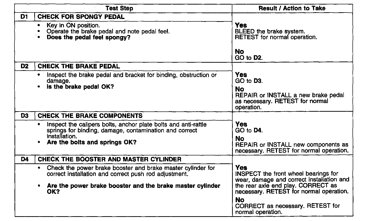 PINPOINT TEST D: EXCESSIVE/ERRATIC BRAKE PEDAL TRAVEL
