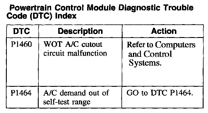 Powertrain Control Module Diagnostic Trouble Code (DTC) Index