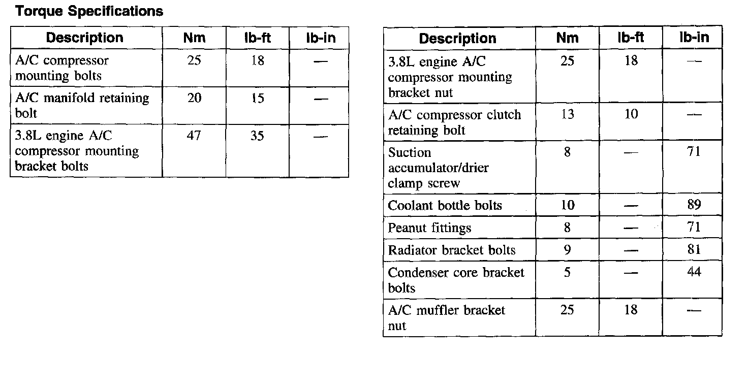 Torque Specifications: