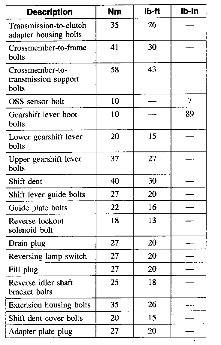Torque Specifications