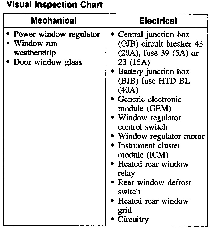 1. Verify the customer concern by operating the system.Visual Inspection Chart:
