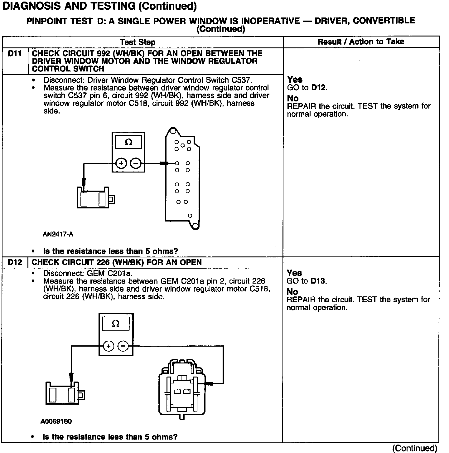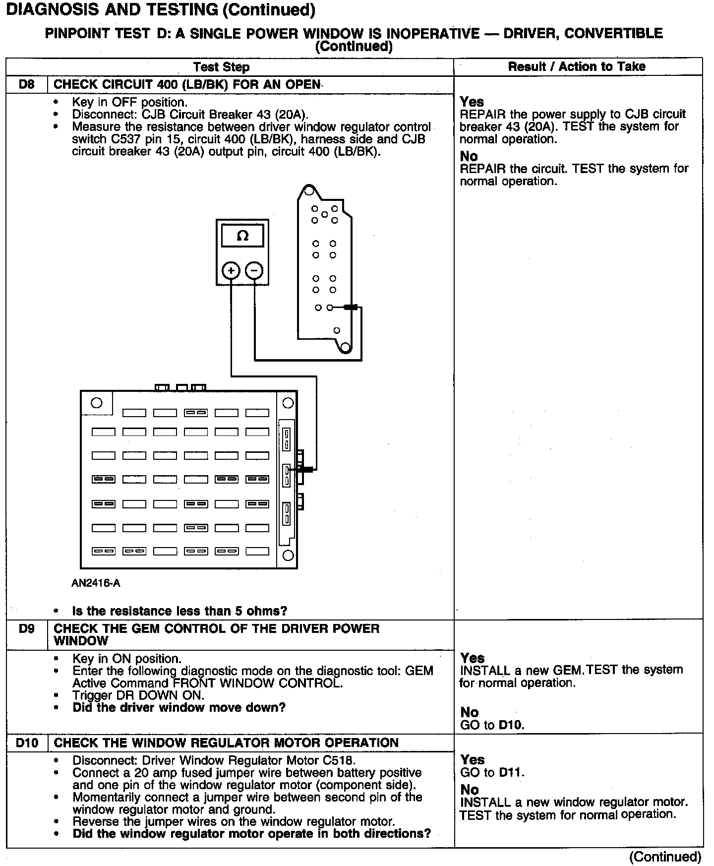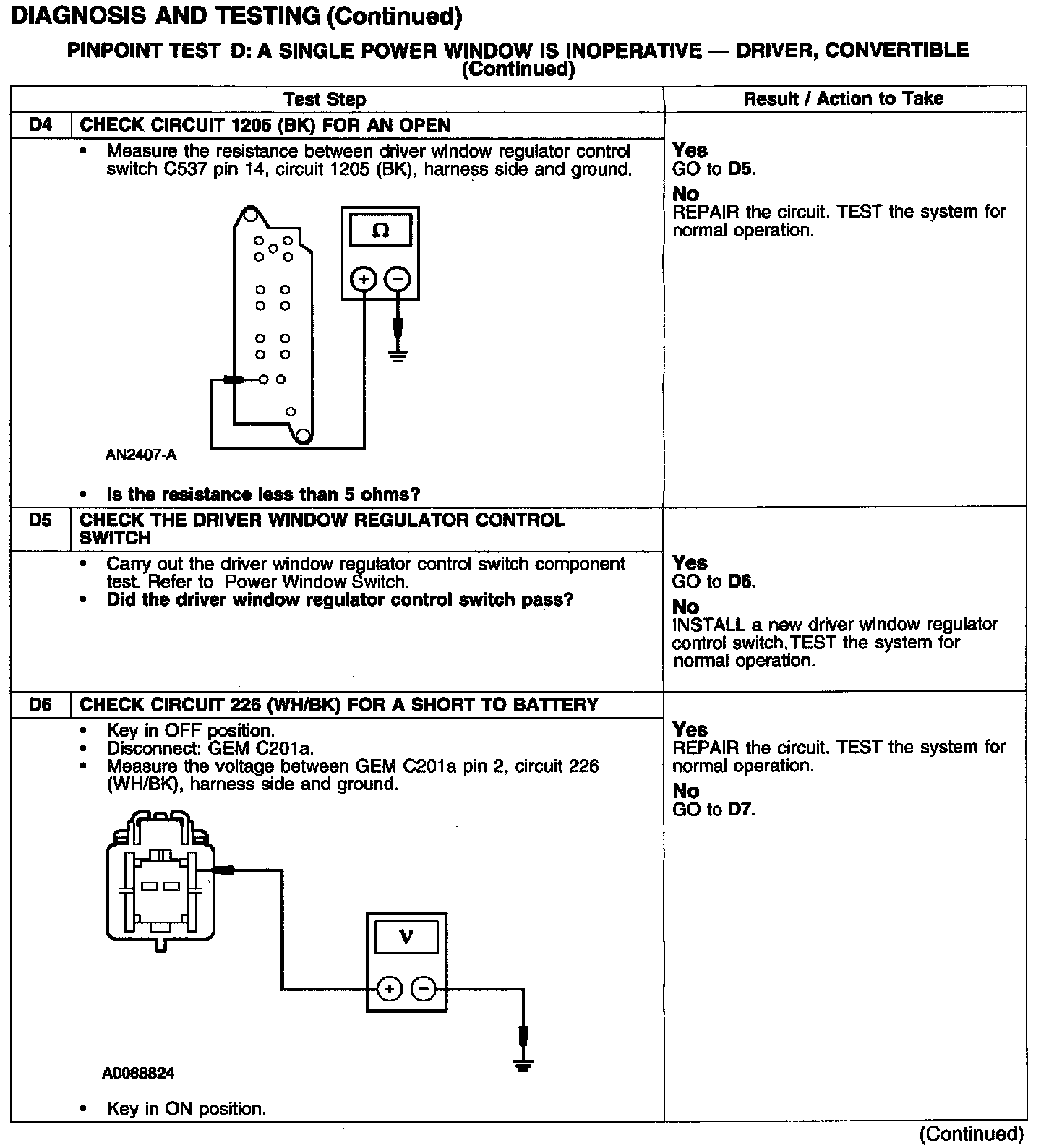 PINPOINT TEST D: A SINGLE POWER WINDOW IS INOPERATIVE - DRIVER, CONVERTIBLE