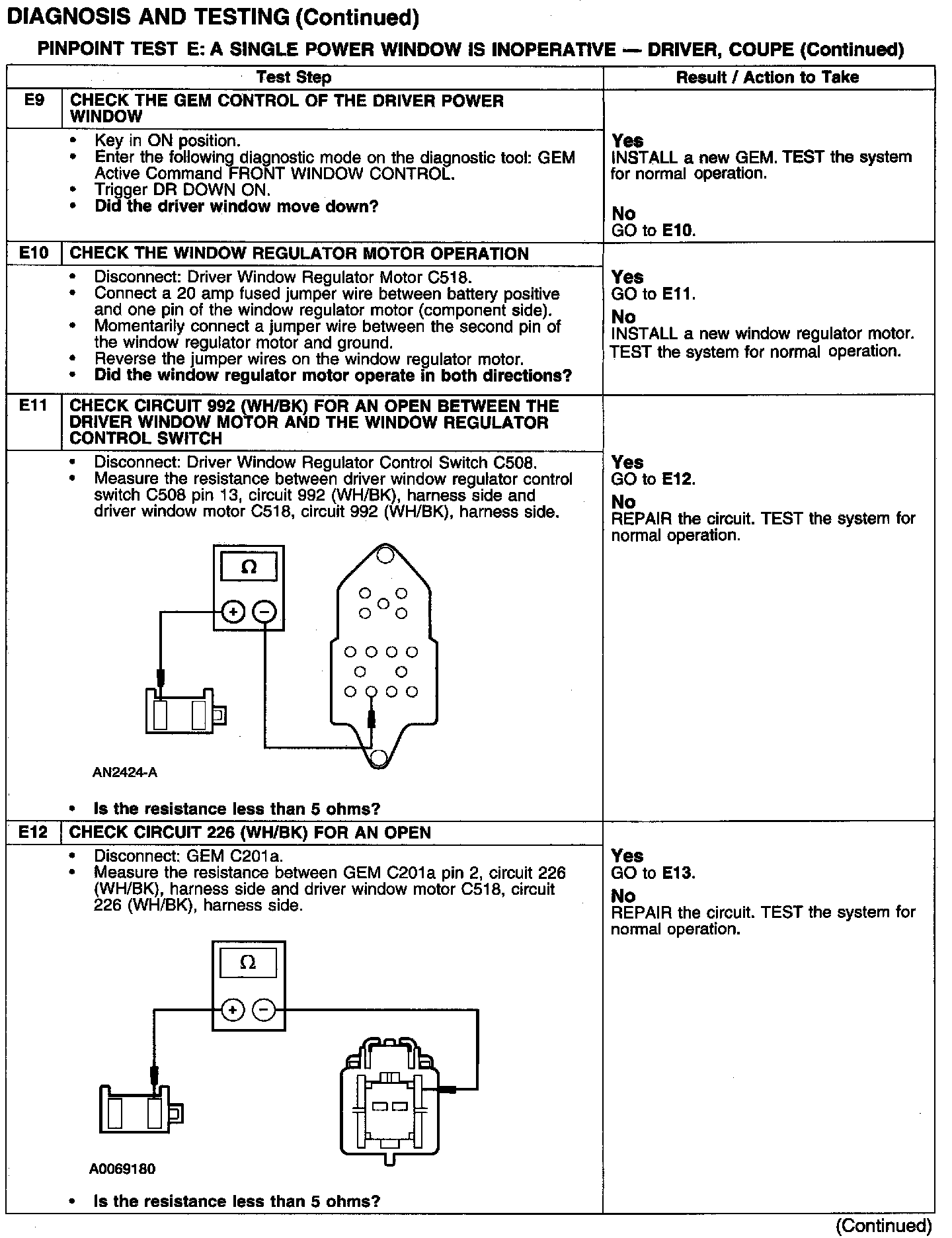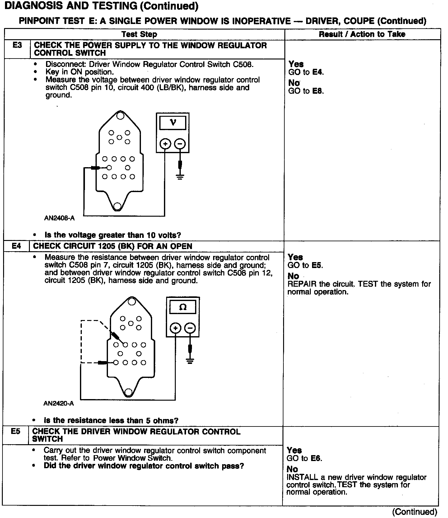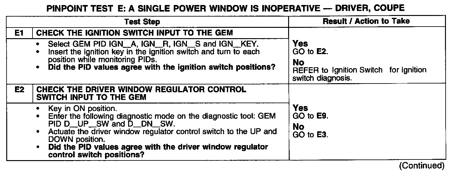PINPOINT TEST E: A SINGLE POWER WINDOW IS INOPERATIVE - DRIVER, COUPE