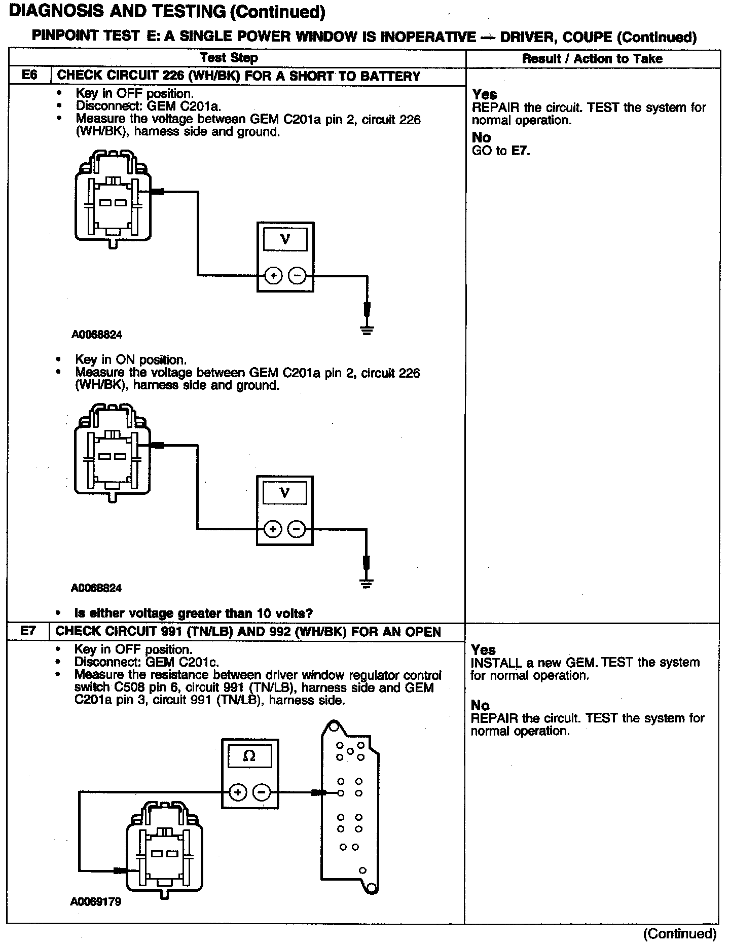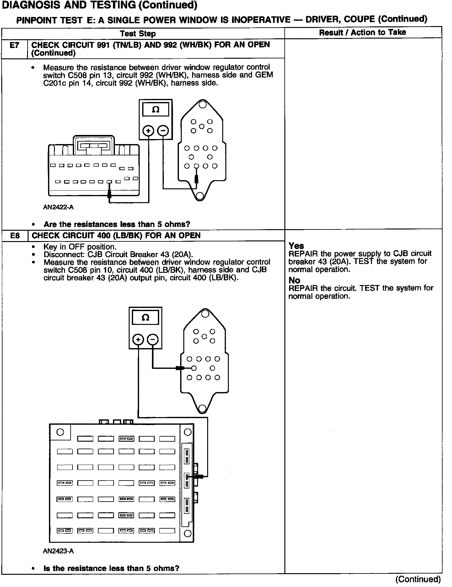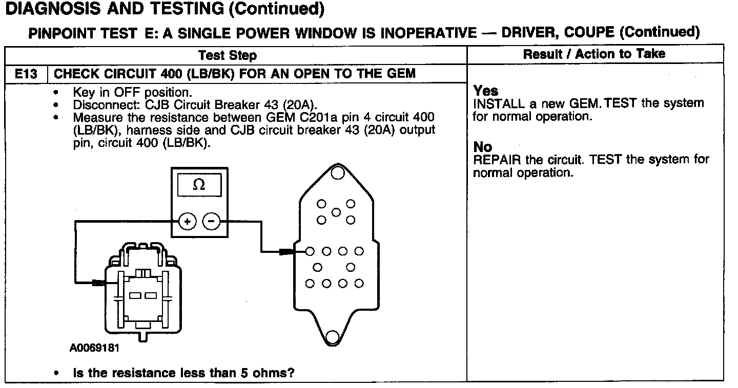 PINPOINT TEST E: A SINGLE POWER WINDOW IS INOPERATIVE - DRIVER, COUPE